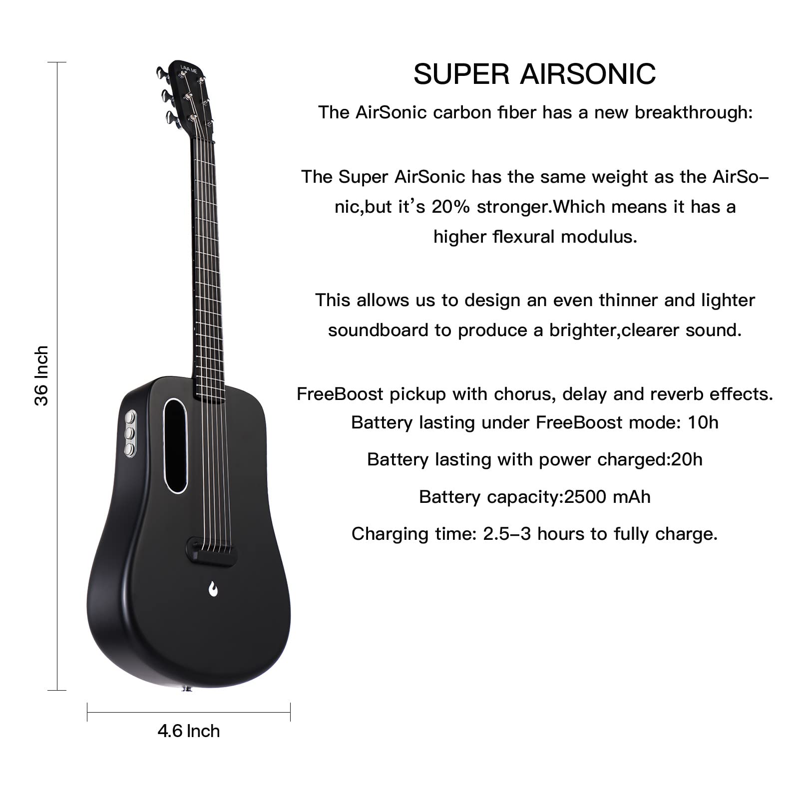 Đàn Guitar Acoustic LAVA ME 2 Size 36 w/Effect, Black